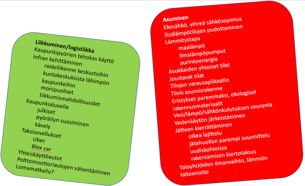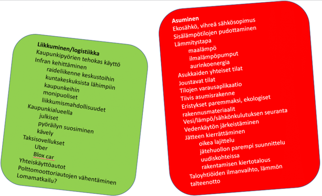 Työpaja oli hyvin menestyksellinen, erilaisia yhteiskunnassamme tarpeellisia elämäntapojen muutoksia kertyi runsaasti. Saadun palautteen perusteella opiskelijat pitivät aiheen käsittelytavasta.