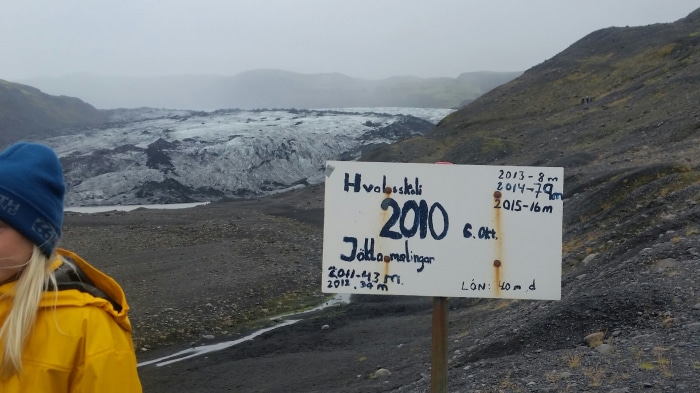 Samsøn jälkeen kurssilaisten matka jatkui kohti Islantia, jossa kokoonnuimme Sólheimarin ekokylään. Päivien teemana oli ilmastonmuutos, jota pääsimmekin havainnoimaan hyvin konkreettisesti Sólheimajökull-jäätiköllä yhdessä islantilaisen Vihreä lippu –koulun oppilaiden kanssa. Kyseinen jäätikkö sulaa kymmeniä metrejä joka vuosi ja sulamisen jäljet ovat selvästi havaittavissa. Koululaiset tekivät tärkeää työtä tutkiessaan jäätikön vetäytymistä ja asian konkreettisuus kävi ilmi ympäröivässä luonnossa.