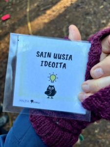 Kuten yllä oleva sitaatti julistaa, ympäristö- ja kestävyyskasvatuksen kupla ja uuden oppiminen oli Virroilla tänäkin vuonna vahvasti keskiössä. Ympäristökasvatuksen monia menetelmiä todella päästiin käyttämään ja oppimaan; tästä pitivät huolen niin Riikka Hohdin mainio keynote-luento, lukuisat upeat työpajat sekä kenties tärkeimpänä kaikki ainutlaatuiset ja tärkeät keskustelut, joita pitkin tapahtumaa pääsi eri taustoista tulevien ympäristökasvattajien kanssa käymään.