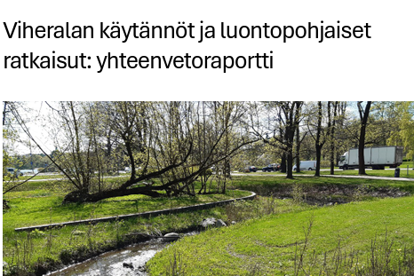 Viheralan käytännöt ja luontopohjaiset ratkaisut -hanke keskittyi ilmastonmuutoksen ja luontokadon haasteisiin, kuten hulevesien hallintaan ja lämpösaarekeilmiön vähentämiseen. Tavoitteena oli kehittää ja edistää luontopohjaisia ratkaisuja (Nature-Based Solutions, NBS*) Kanta- ja Päijät-Hämeen kunnissa, tuottaen samalla materiaalia, joka on hyödynnettävissä valtakunnallisesti.
