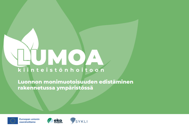 LUMOA kiinteistönhoitoon -hankkeessa koulutettiin kiinteistönhoito- ja viheralan toimijoita luonnon monimuotoisuudesta sekä sen turvaamisesta käytännön tehtävissä. Hanke oli EU:n osarahoittama ja se toteutettiin Suomen ympäristöopisto Syklin ja Ekokumppanit Oy:n toimesta 1.8.2023 – 30.9.2025. Koulutukseen osallistui yhteensä n. 60 henkilöä.